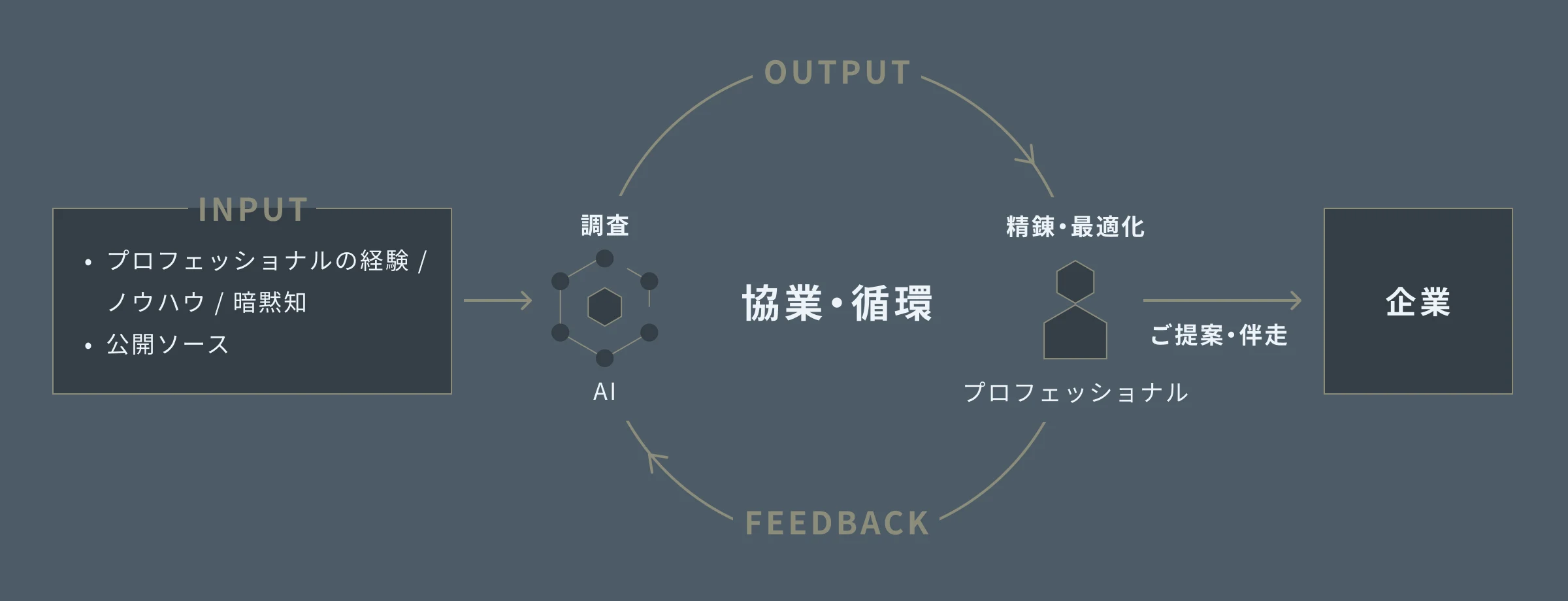 AIとプロフェッショナルが協業し、知見と現場の判断が循環する仕組みによって、私たちは再現性の高い高品質なサービスを実現しています。